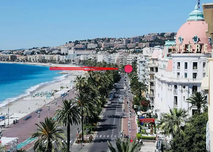 L'appartamento è collocato nel distretto Promenade des Anglais, a soli 350 metri dal Palais de l'Agriculture e a 1 km da Forum Nice Nord. Gli ospiti possono trovare il Museo di Belle Arti di Nizza a circa 10 minuti in auto.